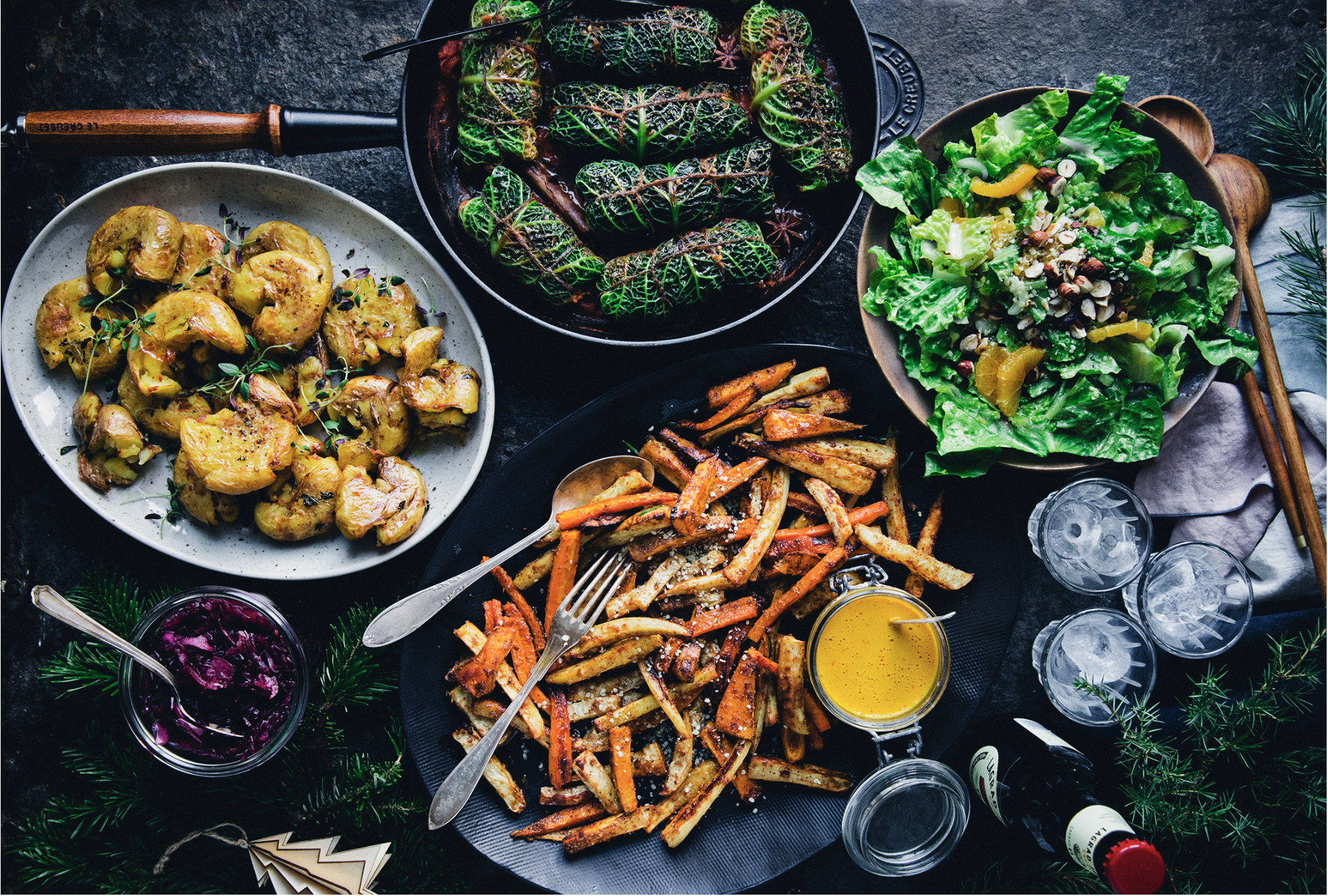 As with travel, planning ahead often yields the best (and most susty!) results for your celebratory feasting. Of course, giving your Aunt who makes the best holiday rum cake a heads-up is prudent, and so is planning for that overnight brine / bread proving / cookie decorating / oven sharing. But, a couple of overlooked points may be sourcing and vegetarian/vegan accommodation.
