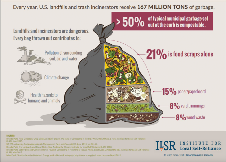 - If you have a backyard or outdoor space to do so, you can compost at home. This does have some restrictions (or at least some complications) in terms of the kind of food scraps you can safely use, but it's a pretty easy option. Checkout mindbodygreen.com for a setup guide.
